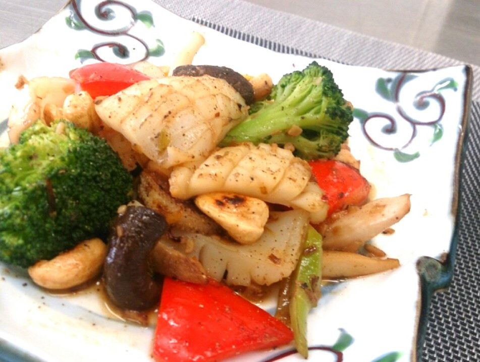 イカとカシューナッツ炒めは、花椒を効かせてワンランク上の本格派の味に。