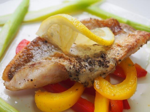 スズキのソテー、レモンソース。
