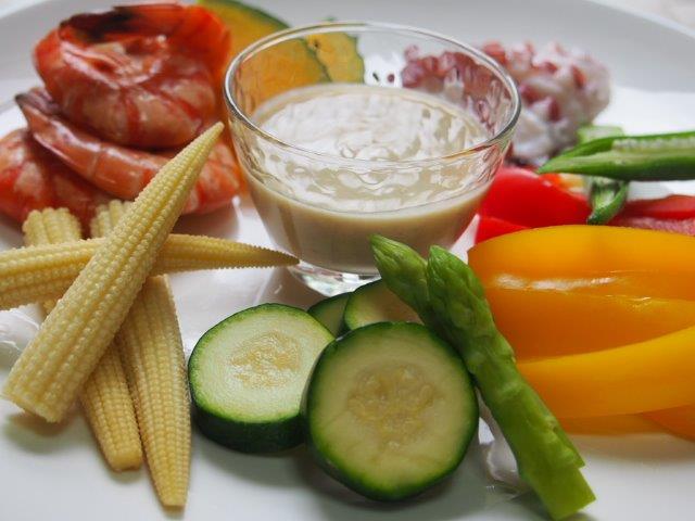 魚介と夏野菜のバーニャカウダ。